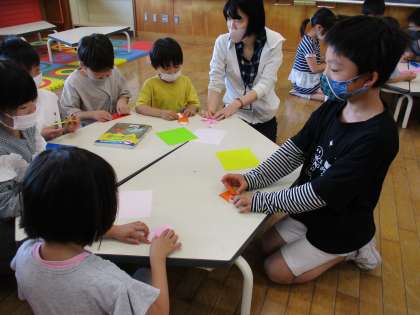 【5月25日】3年生 折り紙名人、1年教室に現る!