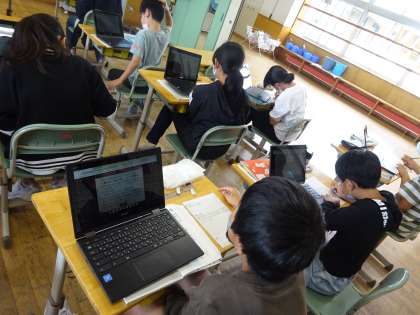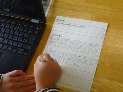 国語科の学習では、調べ学習をするときに大切な引用の仕方について学習しています。調べたい内容が違うと、引用する文章も違い、どの文章を引用するかをよく考えながら取り組みました。他の教科での調べ学習をするときに生かしていきたいですね!