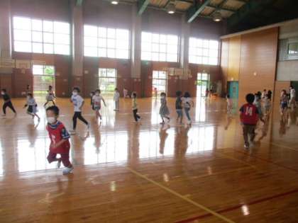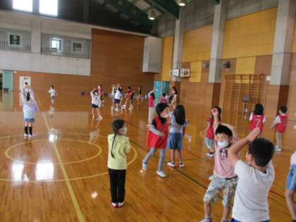 2年生のスポーツ係が企画した「バナナおにごっこ」を1年生と一緒に行いました。最初はスポーツ係の2年生が鬼になり、2回目は1回目で一度もつかまらなかった人も鬼になっておにごっこをしました。1年生と楽しく遊べたことがとてもよかったです。これからも企画して、1年生と遊ぶ機会をつくっていきたいです。
