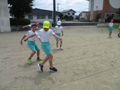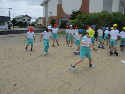 ランニングドリルで少し体をほぐした後、50mを全力で駆け抜けました。2か月足らずですが、記録の伸びを実感できた子が多かったようです。