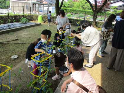 2年生は、育てている野菜のお世話について考えました。おうちの方と一緒にお世話をすることができ、喜んでいました。