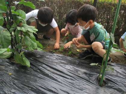 野菜がぐんぐん成長しています。きゅうりやオクラなど少しずつ収穫できるようになってきました。朝は野菜の収穫をしたり、草むしりをしたりしました。どんどん大きくなるのが楽しみです。