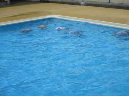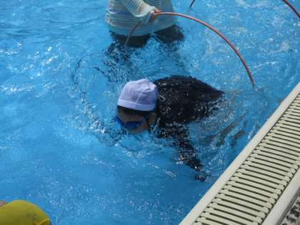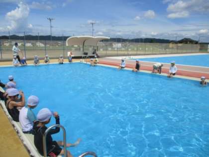 今年度初めての水泳学習を行いました。プールの準備やシャワーの仕方など入り方について確かめたり、水に慣れる練習をしたりしました。だるま浮きに挑戦すると、頭まですっぽり水につかって浮く子がいました。少しずつ練習していきます。