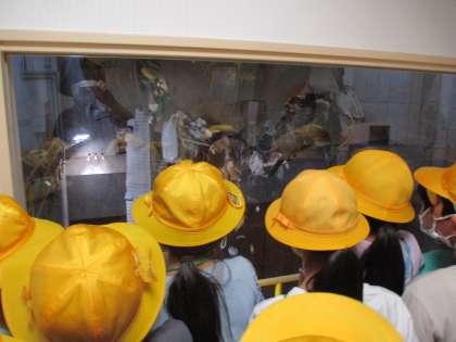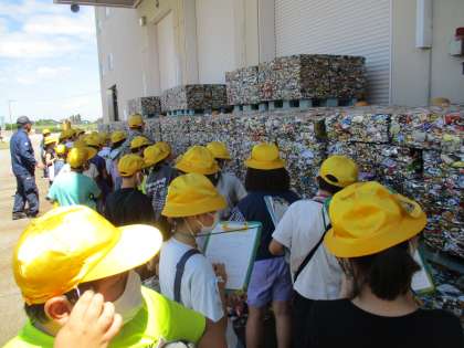 午前中はリサイクルセンターへ行きました。職員の方からごみ処理に関するお話を聞いたり、回収されて潰された空き缶やゴミがクレーンで持ち上げられる様子を実際に見ることができました。実際に処理の様子を見たことから、ゴミの学習への意欲をさらに高めることができた子供たちでした。