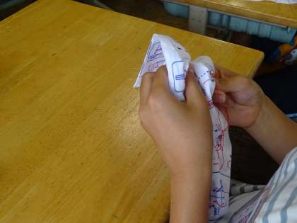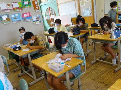 家庭科では、裁縫セットを使って、色々な縫い方を学習しています。今日は、本返し縫いに挑戦しました。針を刺す場所に注意しながら、丁寧に縫っていきました。コツを覚えると、集中して取り組んでいる子供たちでした。次は、自分の名前を縫うことにチャレンジです!