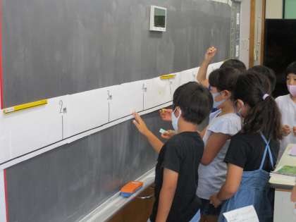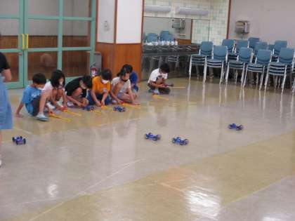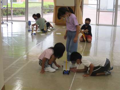 今日の理科は、「風とゴムのはたらき」の学習でした。車の組み立ての時からわくわくどきどきの子供たち。送風機の風の強さを変えて、車の走った距離を測る実験をしました。どのグループも協力して、長さを測定していました。どの子も、目をキラキラ輝かせながら、楽しく車を走らせていました。