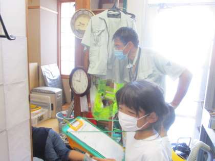 生活科の学習で、先生や職員の方へインタビューをしました。校長室、保健室、用務員室に入れていただき、中にどんなものがあるが教えていただきました。また、どんなお仕事をしておられるかや、好きなもの等、相手の方をもっとよく知るためにたくさんの質問をしてきました。入学してから3か月が経ち、学校探検を行ったり、たくさんの教職員の方とも関わったりしてきましたが、もっと学校や教職員の方が好きになったようです。