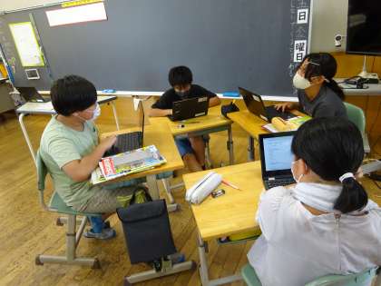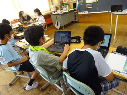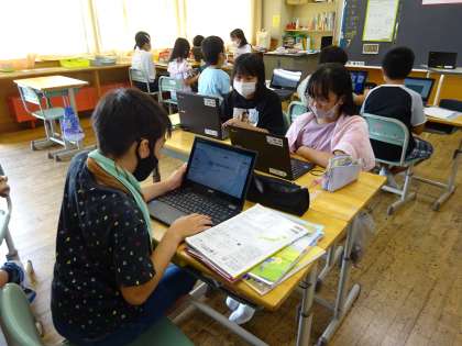 社会科では、米づくりのさかんな地域について学習しています。お米の作り方や今と昔の米作りの違いなど、みんなの疑問を解決するために、グループで調べ活動に取り組んでいます。来週は、みんなが先生となって友達に調べたことを発表しましょう!