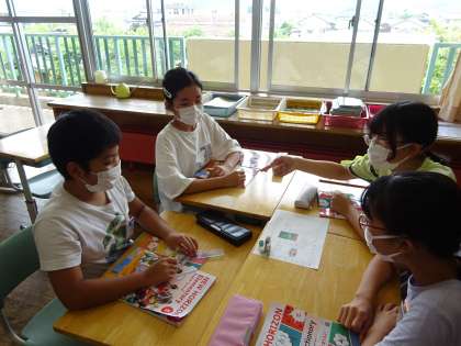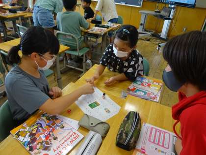 今日は、1学期最後の外国語がありました。1学期の復習として、好きな色の聞き方や勉強したい教科の聞き方など、様々な表現を振り返りました。最後には、すごろくをしながら友達と英語でのやり取りを楽しみました。また、ALTの先生と一緒に2学期も楽しみながら学習していきましょう!