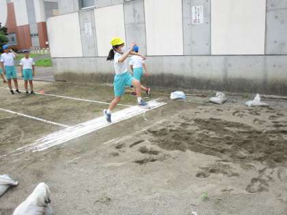1学期最後の授業で走り幅跳びを行いました。子供たち一人一人が目標をもち、その目標を達成するために、歩幅や跳ぶときのリズムに気を付けて何度も連習する姿が見られました。子供たちは、「今以上の記録を出せるようになりたい」とやる気に満ちあふれています。