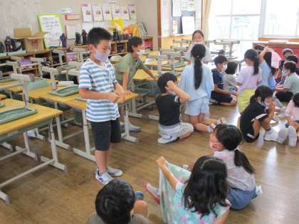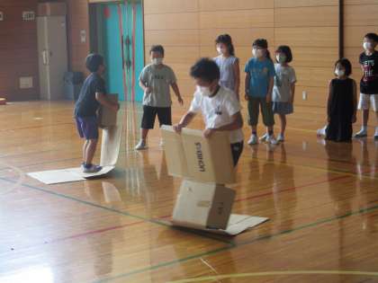 3年生は、1学期がんばったねということで、「3松ほかほかスマイルフェスティバル」集会をしました。司会から飾り付けまで自分たちで企画し、「ジャスチャーゲーム」や「段ボールリレー」など楽しいゲームを行いました。2学期もみんな仲良く笑顔でがんばろうね。