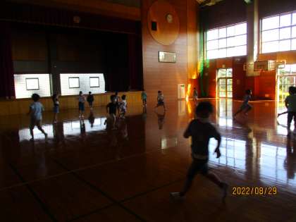 休み時間には、1・2年生がアリーナで走り回ったり、ボールを使って運動したり、元気いっぱい活動していました。