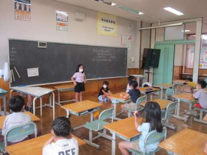 また、学習に、はりきって取り組んでいます。国語科では、夏休みに食べておいしかったもの、くやしかったこと等、それぞれ自分の話したいことを決めて、友達に楽しそうに話していました。