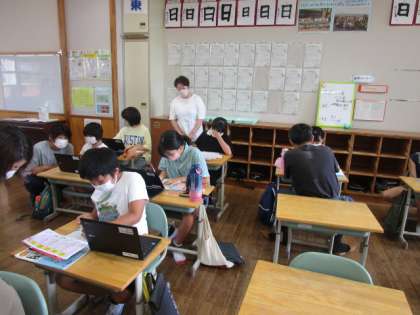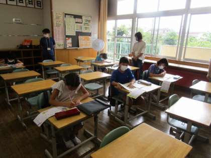 支援員のみなさんに声をかけていただいたり、教えていただいたりしながら、自分が用意してきた課題に真剣に取り組んでいました。宿題やテストに向けての復習、クロムブックを使った調べ学習等、自分の力を高めるために様々な課題に取り組んでいました。
