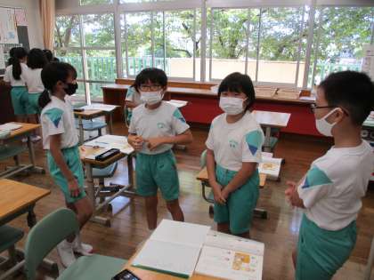 国語の時間に友達と役割を決めて対話の練習を行いました。お互いが納得してやりたいことをするにはどう伝えたら良いのかグループで話し合って考えていきました。対話する時には自分とは相手の立場を考えることの大切さに気が付いた子供たちでした。