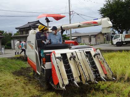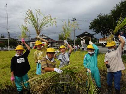 途中でコンバインに乗せていただくと、「こんなにすぐにできるんだ!」と機械で作業を行うスピードに子供たちは感動していました。稲刈りの一つ一つの作業の大変さと丁寧さを感じ、これからお米を大切に食べていきたいと感じた子供たちでした。