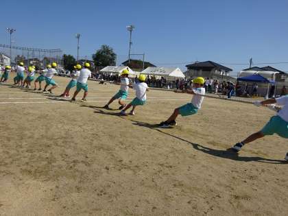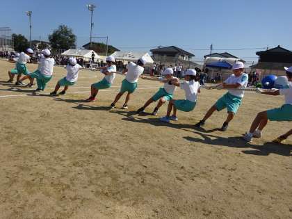 上学年綱引きでは、予選の結果から優勝決定戦は青団対白団、3位決定戦は赤団対黄団の戦いを行いました。4〜6年生みんなの力を合わせて勝負をし、各団かけ声や綱の引き方など、それぞれの作戦もあり、いい戦いとなりました。
