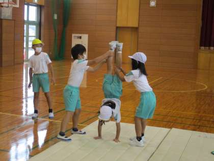 また、学習発表会に向けてマットの学習も頑張っています。グループで協力して技を磨こうと声をかけながら取り組んでます。それぞれの仕上がりがとても楽しみです。