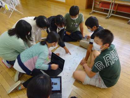 総合的な学習の時間では、「保内の安全守り隊!」の学習を進めています。地区ごとに集まり、交通安全・犯罪・用水のポイントから話合いました。思っている以上に危険な場所が多くあり、「これは気を付けていかないと!」と気持ちを引き締める思いになっている子供たちでした。