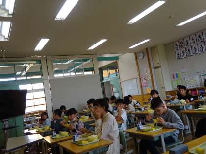 今日、明日の給食では、5年生が稲刈りをしたお米が給食に出ます。いつもおかわりをしてもりもり食べる子供たちですが、今日は特におかわりをする人数が多いように感じました。自分たちが稲刈りをしたお米は格別においしいですね!