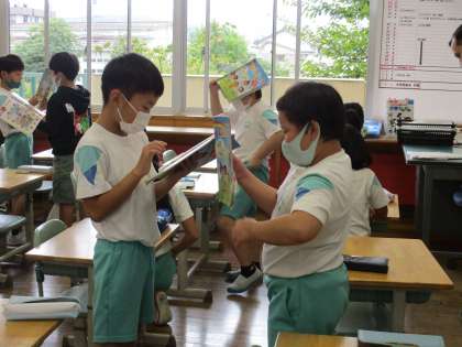 外国語活動では、アルファベットを学習している3年生。友達に、「What’s this?」と尋ね、外国語でコミュニケーションを図っていました。子供たちは、ALTの先生との外国語が大好きです。みんな、笑顔で楽しく学習に取り組みました。