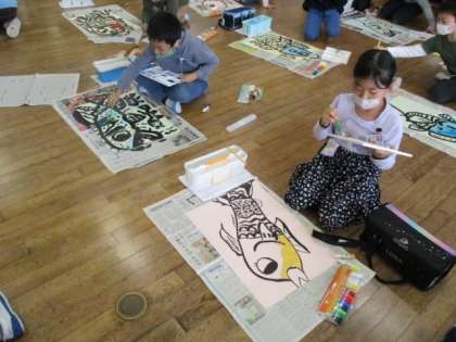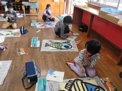 先週描いた「さかな」の絵に色を塗りました。「何色の魚がよいかな?」と想像を膨らませながら、思い思いの色を丁寧に塗りました。作品の仕上がりが楽しみです。