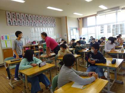 総合的な学習の時間で「保内の安全守り隊!」の学習を進めている5年生です。今日は、なんと防犯協会の方にインタビューをすることができ、保内地区の危険なところや不審者の特徴など、様々なことを教えていただきました。教えていただいたことをもとに学習発表会や今後の学習に生かしていきたいと思います。