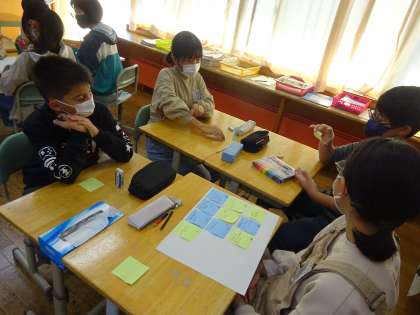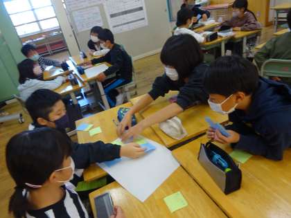 国語科では、「よりよい学校生活のために」の学習を進めています。もっと仲良しな学校にするために、5年生として何ができるかみんなで案を出し合いました。「5年生とどこかの学年が交流会をしたらいいのかな?」「まずは、名前をしっかり言えるようになったらいいんじゃない?」などと、アイディアが膨らみました。次からはどんな内容で話し合うかを決めていきましょう!