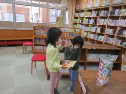 1年生は、毎週図書室にみんなで行き、読みたい本を読んだり、借りたりしています。最初は、どこに何の本があるかよく分からなかったり、読みたい本が分からなかったりしていましたが、図書室の使用に慣れ、読んでみたい本を素早く選ぶことができるようになってきました。