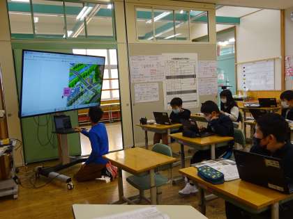 理科では、台風によって起こる被害や災害についてイラストを基に考えました。「大雨によって川の水が氾濫する恐れがあるかも」「木が折れたり、信号機が倒れてくる危険がある」など、台風が近付いてきたときには、日頃の生活の中でも多くの危険があることが分かりました。台風に備えるためには、ハザードマップを確認したり、防災リュックを用意したりすることが大切ですね!