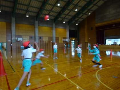 学習発表会が終わり、久しぶりの体育をしました。フラッグフットボールでは、多くの点数を取ることができるように、作戦を立ててから試合に臨みました。「作戦を立て、うまくできそう!」と思って実際に動いてみると、「あれ?この作戦ではボールを運ぶことが難しいかも」ともう一度考え直す色団もありました。動いてみることで新たな発見があったようです。作戦の種類も少しずつ増えてきている子供たちです。次からは、リーグ戦が始まります!