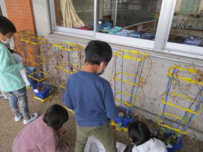 生活では、あさがおの種とりをしました。そろそろお別れが近付いていることを感じながら、一つ一つ丁寧に取っていました。