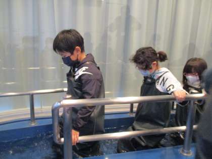 四季防災館では、煙中、流水、地震の体験を行いました。富山県は地震などの災害がとても少ない地域です。しかし、職員の方から「いつ何が起きるか分からないという危機意識をもって過ごすことが大切である」とお話ししてくだり、子供たちは、災害時の避難の仕方などを真剣に聞いていました。