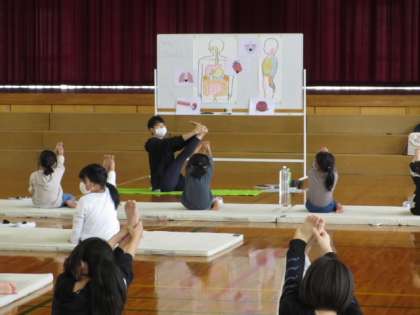 第6回かがやき教室「心も体も頭もスッキリ!子どもヨガ教室」が開催されました。初めてヨガをする子供たちも分かりやすく身体の仕組みを知りながら、様々なポーズをして身体を動かしました。子供たちは「身体がスッキリした!」「また家でやってみたい!」と感想を話すなど、楽しくヨガを体験することができました。