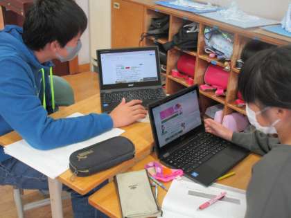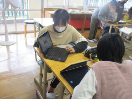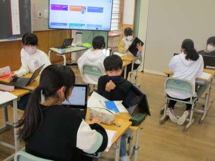 6年生の国語では、日本の文化の良さをクラスの人に発信するために日本の文化を一つ取り上げ、それについて調べ学習を行いクロムブックにまとめました。集めた情報をどのようにまとめると相手に伝わりやすいかを考えて試行錯誤する姿が見られています。また、発表し合う中で友達の良さを認め、自分の文にも生かそうとする姿も見られています。