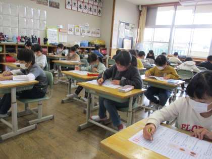 今日から12月に入りました。いよいよ2学期もあとわずかとなり、今週から3年生はテストウイークです。初めてのだるま筆で書き初めの練習や、テストを集中して取り組みました。