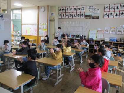 また、今日は学校保健委員会が行われ、最後に代表の友達の発表を見ている様子です。友達の発表が終わると、大きな拍手が教室中に響き渡っていました。