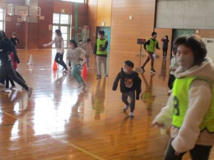 つぎに、けいどろをしました。1年生が鬼役になることもあり、1年生だけでなく、5年生をタッチしようと、一生懸命追いかけていました。