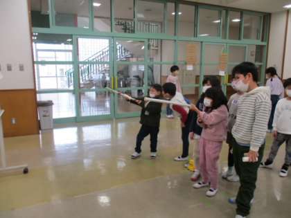 今日は1年生を招待して「おもちゃランド」を開きました。