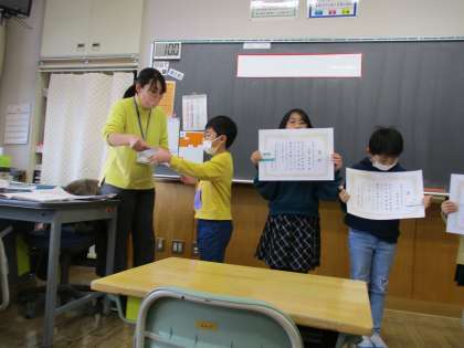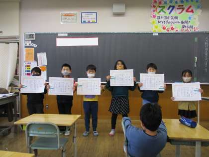夏休みに応募した「青少年標語コンクール」の入賞者の表彰式がありました。教室で、もう一度、表彰式を行うと、友達の授賞を拍手をして称えている子供たちの姿があり、とても微笑ましかったです。入賞したみなさん、おめでとうございます。