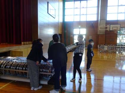 明日の創校記念式に向けて、会場準備を行いました。今までは、6年生が中心となり、行事があったときには会場準備をしていましたが、3学期からは5年生が引き継ぐことになりました。自分の仕事が終わっても「まだやることありますか?」と積極的に動こうとする姿が見られ、大変頼もしく感じました。