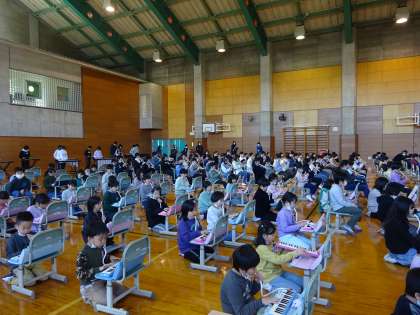 明日は、いよいよ創校記念式が行われます。子供たちは、今まで練習を積み重ねてきた校歌合奏の練習を披露する場でもあります。今日の練習では曲の始まり方、終わり方の練習を中心に行いました。明日の準備はもうバッチリです!