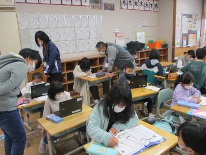第8回学びの庭が開催されました。子供たちは、新年のちかいでたてた目当てを意識しながら集中して学習していました。講師の方から教わるだけでなく、友達同士で教え合う姿も見られ、できるようになるために頑張ろうという気持ちが伝わってきました。