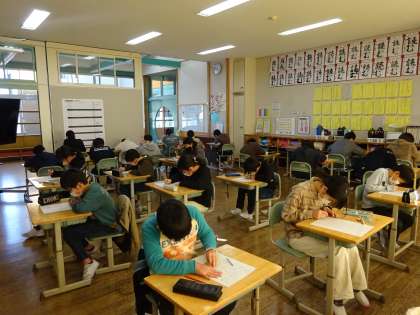 今日は、計算チャレンジテストを行いました。3学期が始まってから1週間、テストに向けて毎日計算練習に取り組んできた子供たちです。苦手な問題は、何度も自学ノートで練習をし、「すらすらと解けるようになってきた!」という声も聞こえていました。さて、結果はいかに!?