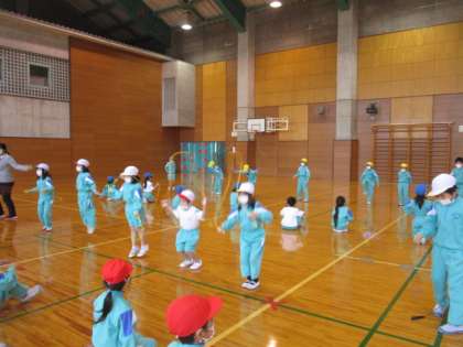 体育の学習では、短縄跳びや8の字跳びに挑戦しています。8の字跳びでは、上下に動く縄の下をくぐり抜ける練習から挑戦し、今日は初めて回っている縄に入り跳ぶ練習をしました。全員縄に入ることができました。次は入って跳ぶことができるように練習していきます。