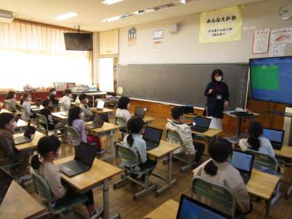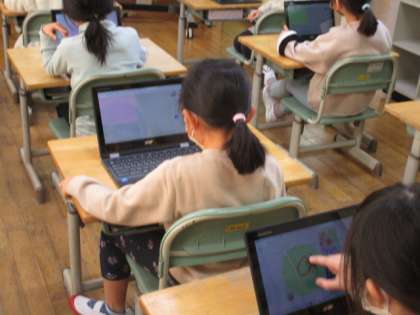 自分でかいたイラストを使って簡単なアニメーションづくりをしました。支援員の方のお話をよく聞き、楽しみながら取り組んでいました。明日は、2回目の学習です。子供たちは、とても楽しみにしています。