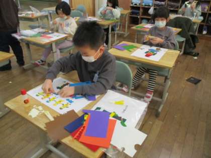 【1月23日】2年生 少しずつ版が仕上がってきました。
