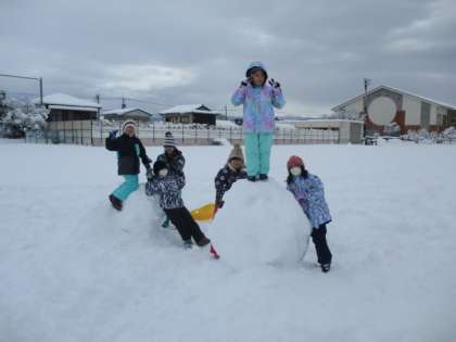 そりチームはコースを作るところから始まり、ジャンプ台ができたり、カーブするところができたりといろいろなコースができました。歓声をあげながら楽しく遊ぶことができました。最後には雪合戦をして仲良く遊びました。