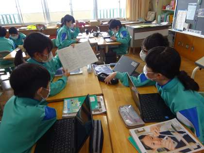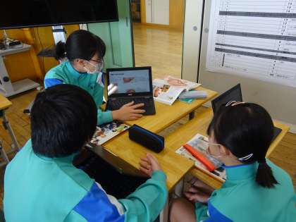 理科では、「人のたんじょう」について学習を進めています。母親の子宮の中でどのように育つのか、身長や体重はどのように増えていくのかなど、自分の調べたいことをクロムブックで調べ、スライドやノートにまとめました。今日は、調べたことをグループの友達に発表しました。友達の発表を聞いて「初めて知ったことがあったよ!」と新しい発見があったようです。