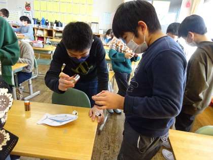 理科では、電流がうみ出す力の学習が始まり、今日は魚釣りゲームを行いました。まずは、小さい魚のエビから挑戦し、どんどん大きな魚を釣ろうと子供たちは頑張っていましたが、なかなか釣れず、、、。「マグロを釣りたいのに、どうしたらいいのかな?」と悩む子供たちの姿がありました。今日ゲームをやってみて感じた疑問を次からの実験につなげていきましょう!